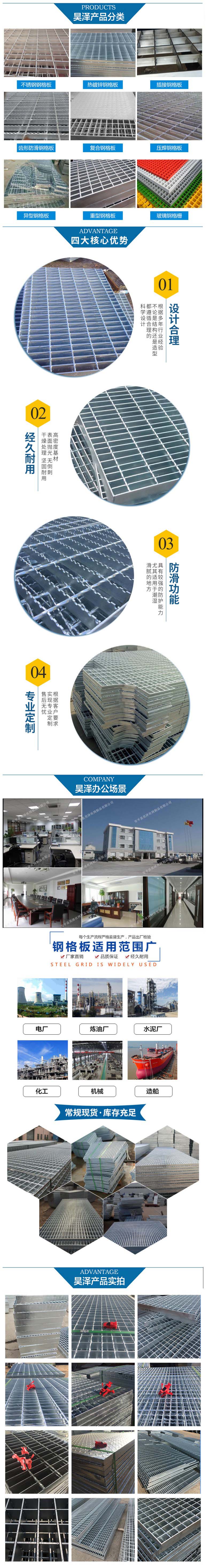 鋼格板適用于合金,建材,電站,鍋爐。造船。石化,化工及一般工業(yè)廠房、市政建設(shè)等行業(yè),具有通風(fēng)透光、防滑,承載力強(qiáng),美觀耐用,易于清掃,安裝簡(jiǎn)便等優(yōu)點(diǎn)。新橋牌鋼格板已在國(guó)內(nèi)外各行各業(yè)得到廣泛應(yīng)用,主要用作工業(yè)平臺(tái),梯踏板,扶欄,通道地板,鐵路橋側(cè)道,高空塔架平臺(tái),排水溝蓋,井蓋,道路隔柵,立體停車(chē)場(chǎng),機(jī)關(guān)、學(xué)校、工廠、企事業(yè)、運(yùn)動(dòng)場(chǎng)、花園別墅的圍欄,也可用作民宅的外窗,陽(yáng)臺(tái)護(hù)欄,高速公路、鐵路的護(hù)欄等。
